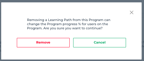 You will see a list of all Learning paths that are assigned to the Program. To remove the Learning Patch, click on the gear on the right-hand side and select “Remove”.