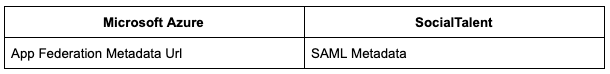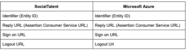 Here's a guide of what information from Microsoft Azure goes into the SocialTalent Admin Settings > Single Sign-On:
