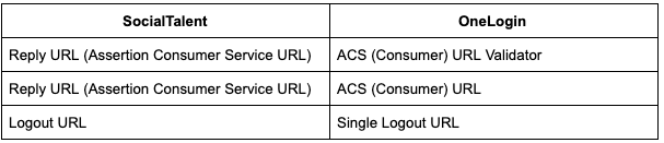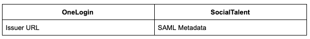Here's a guide of what information from OneLogin goes into the SocialTalent Admin Settings > Single Sign-On: